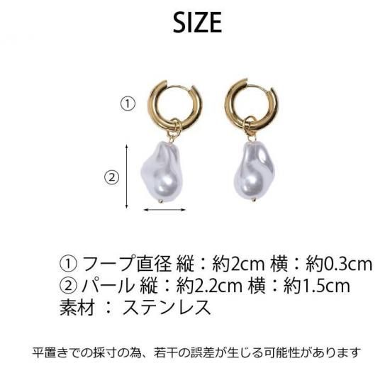 フープ 直径:約2cm 幅:約0.3cm パール 縦:約2.2cm 横:約1.5cm
