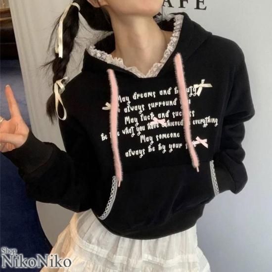 全品送料無料一部除く レースフード ロゴリボン フーディーパーカー【即納】 レディ