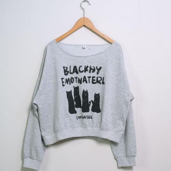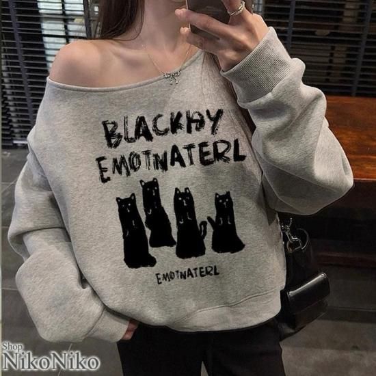 全品送料無料一部除く 猫プリント オーバーサイズ ワンショルダースウェット【即納】
