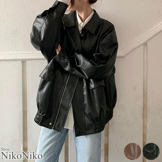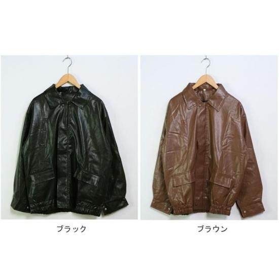 全品送料無料一部除く ワンポイントロゴ刺繍 オーバーサイズ PUレザーブルゾン【即