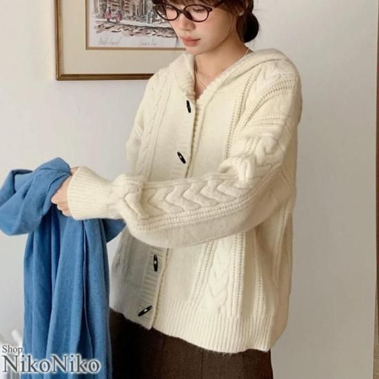 全品送料無料一部除く トグルボタン フード付き ダッフルニットカーディガン【即納】
