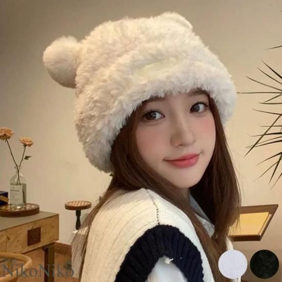 全品送料無料一部除く くま耳付き シャギーニット ビーニーキャップ【即納】レディー