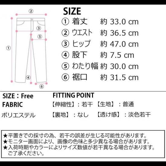 ■サイズ:着丈33cm ウエスト36.5cm ヒップ47cm 股下7.5cm わたり幅30cm 裾口31.5cm