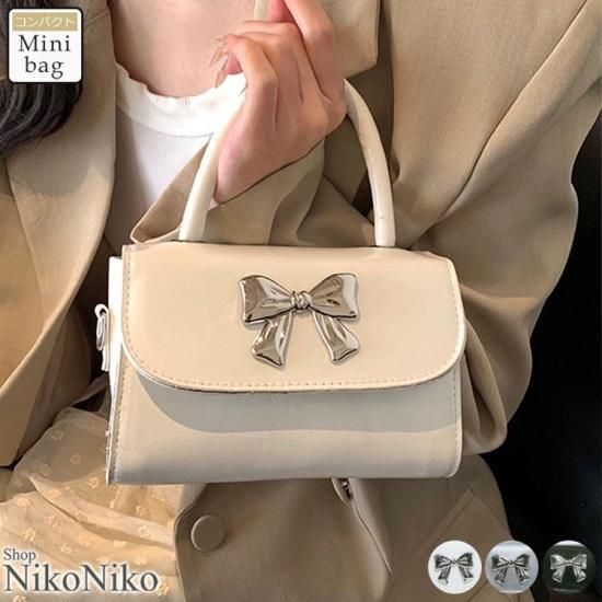 中央のメタルリボンがかわいいミニショルダーバッグ♡